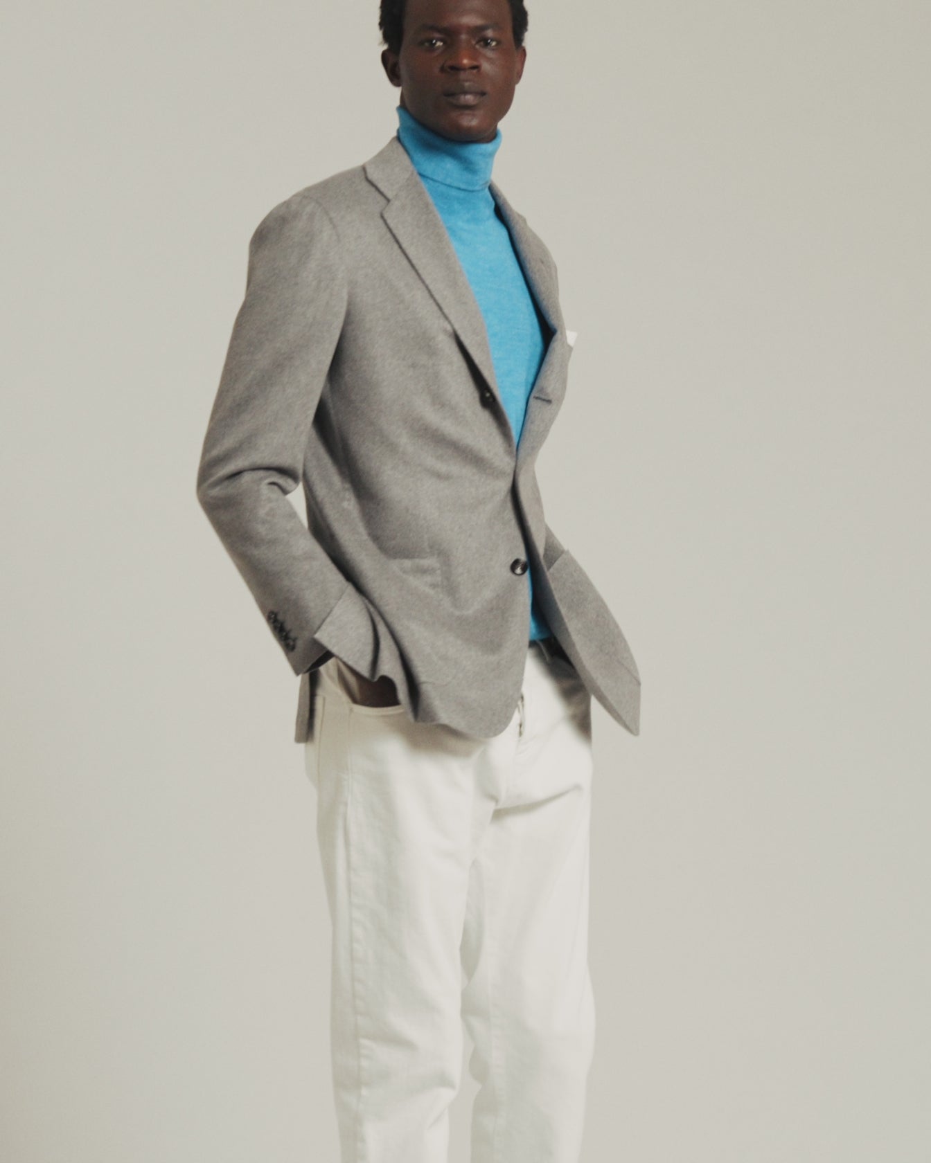 LIGHT GREY CASHMERE AND VICUÑA BLAZER WITH NOTCH LAPEL