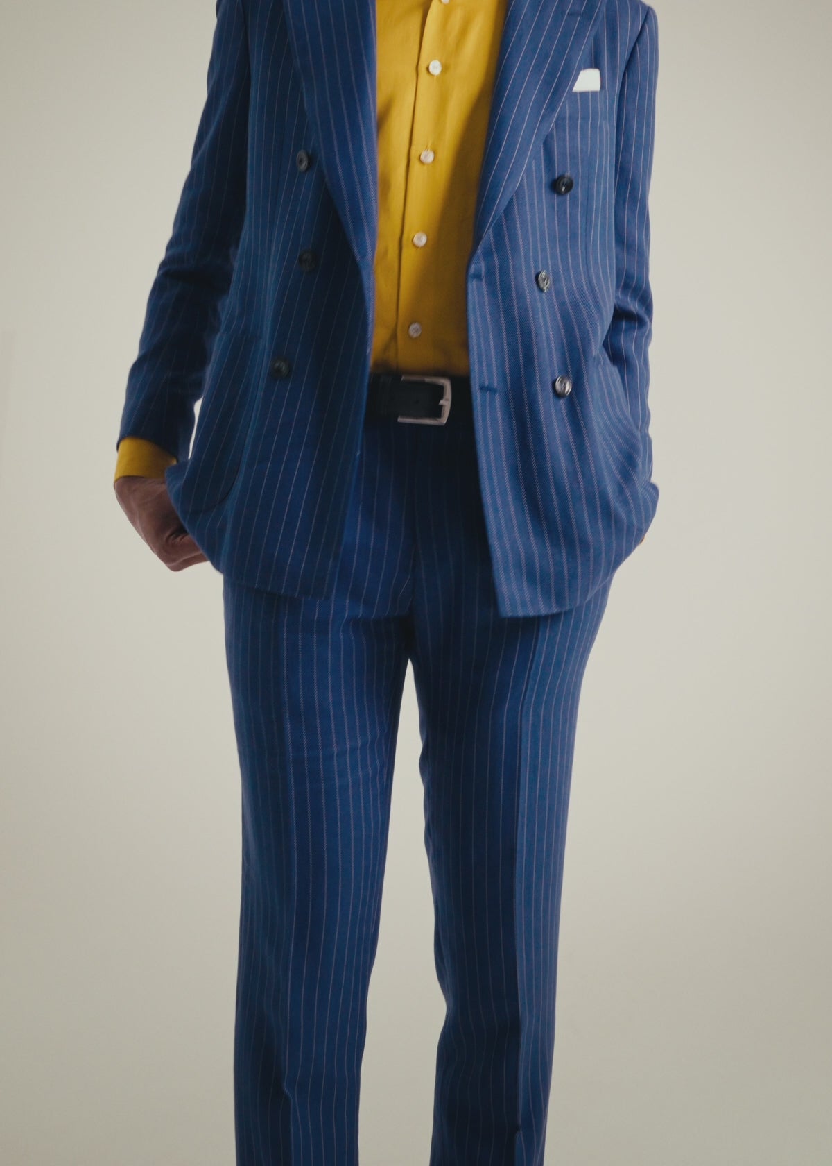 The soft fabric and perfect lines combine with the timeless sophistication of the pinstripe pattern, offering a casual take on the classic double-breasted suit. Crafted from a fine blend of cashmere, linen and silk, this garment offers extraordinary comfort, combining elegance with freedom of movement. Each suit is meticulously cut and sewn by hand in Naples by our expert tailors, who dedicate up to 25 hours of labour to ensure superior quality and painstaking attention to detail.
